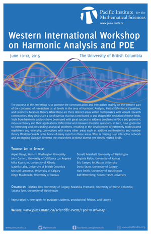 The workshop will gather senior researchers, postdoctoral fellows and related collaborators, and graduate students mainly from universities in western Canada and USA. The great distances between the higher education institutions in this region result in less frequent interchanges and not very fluid dialogue among experts with common interests. It is necessary to incite and support the conversation between researchers and students from the University of Washington, the University of British Columbia, Simon Frasier University, University of Alberta, and the University of Calgary, and other higher education institutions in this geographical area, by creating a space for meeting and talking, like this proposed workshop. We also plan to invite a few internationally recognized leaders in these fields from the US and Europe to teach the mini-courses or deliver survey lectures.
