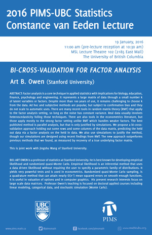 PIMS-UBC Statistics Constance Van Eeden Lecture: Art Owen
