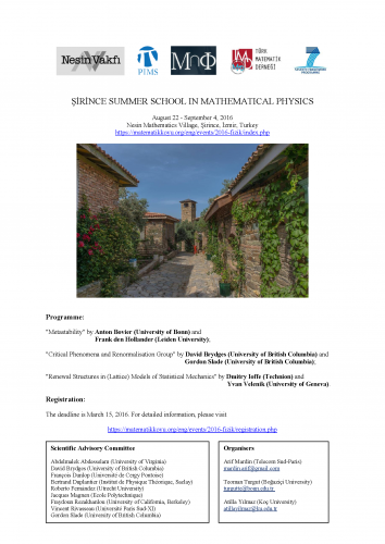 The aim of this intensive two-week summer school is to enable the participants from Turkey and abroad to follow courses on certain aspects of a chosen theme in mathematical physics. Beginning graduate students or postdocs seeking research topics in domains covered by the lectures, or even highly motivated advanced undergraduates recommended by their scientific tutors are encouraged to participate.