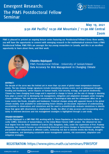 The PIMS Postdoctoral Fellow Seminar: Chandra Rajulapati (Online)