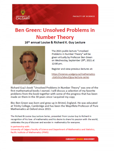 PIMS - UCalgary Louise & Richard K. Guy Lecture: Ben Green